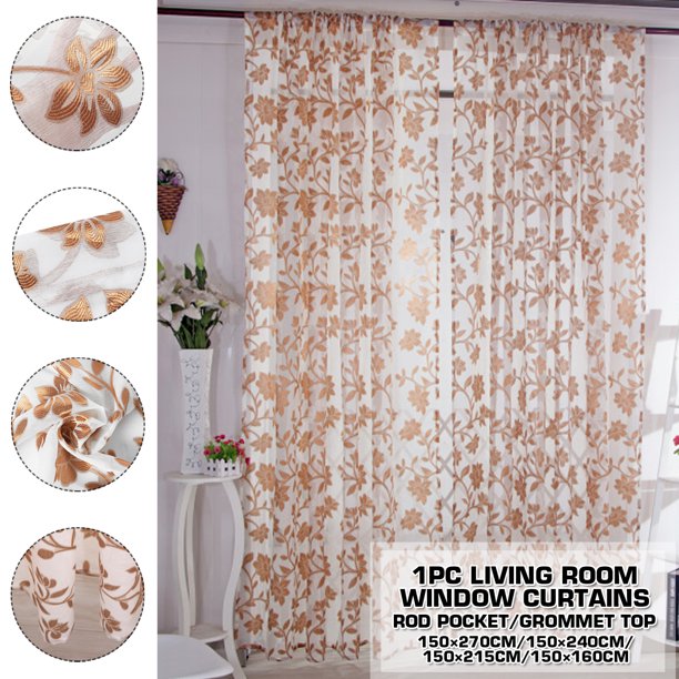 KWANSHOP Rod Pocket Floral Lace Sheer Curtain Panel, 2 ...